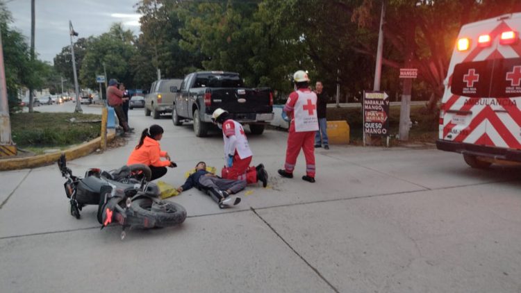 Mante, Tamaulipas.- Dos personas lesionadas fue el saldo de aparatoso choque entre una moto y una camioneta registrado está tarde en el crucero conocido como Los Tubitos.