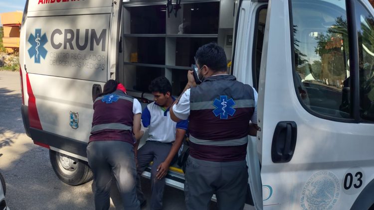 Al lugar acudieron paramédicos de Cruz Roja para darle atención prehospitalaria al estudiante quien manejaba una motocicleta.