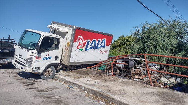 Las personas que atestiguaron los hechos quedaron asombradas pues de no haberse detenido el camión con el barandal este hubiera caído encima de unos domicilios que se ubican en esa zona.