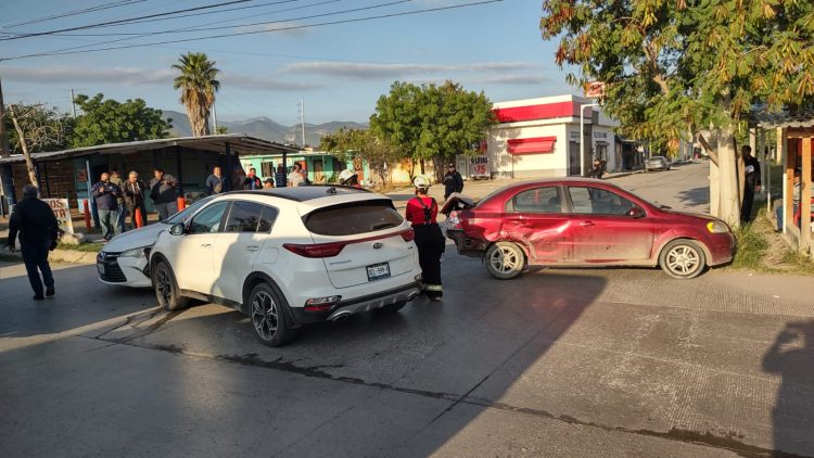 Alrededor de 6 personas fueron valoradas por paramédicos de Cruz Roja luego de participar en un choque múltiple a la entrada de la colonia Mariano Matamoros.