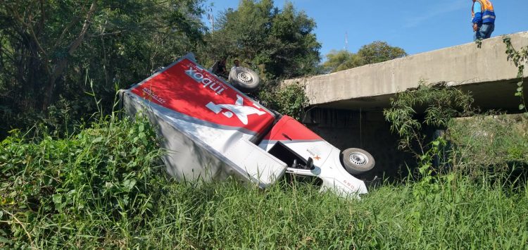 Un empleado de la paquetería inbox se salvó de una muerte segura luego de caer por un costado de un puente y quedar volcado.