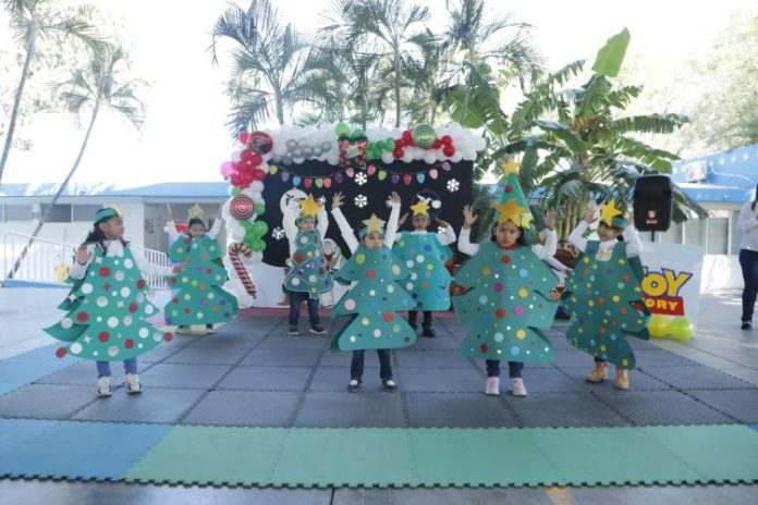 Más de 60 alumnos de nivel preescolar disfrutaron de este gran festival, en donde bailaron al ritmo de “Los Pastores a Belén’’, “Santa Shark’’ y del villancico “Árbol de Navidad, interpretado por alumnos de tercer grado de preescolar.