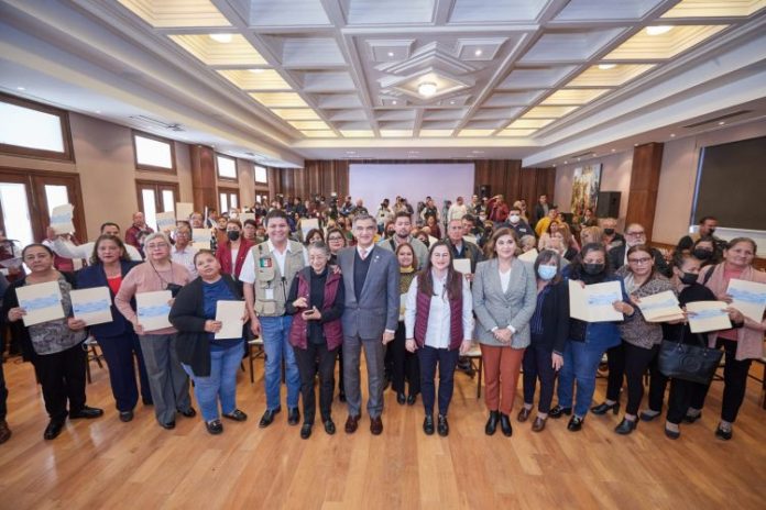 Durante un emotivo acto realizado en el Salón Independencia de Palacio de Gobierno este jueves, al cual asistieron familiares de quienes fueron trabajadores de la Secretaría de Educación de Tamaulipas, en 27 municipios, el mandatario hizo entrega de estos recursos que suman 30 millones de pesos.