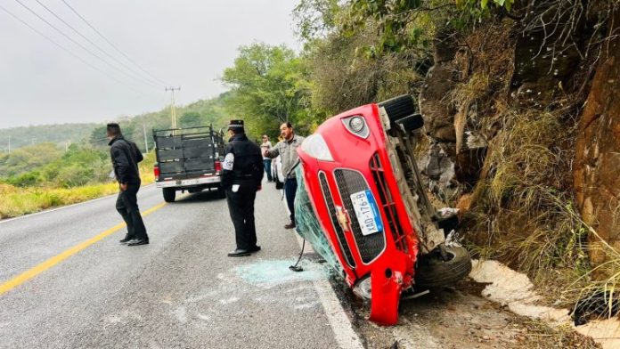 Ciudad Victoria, Tamaulipas.- Una mujer y un menor de edad resultaron lesionados tras el choque y volcadura de un automóvil que circulaba sobre la Carretera Federal 85, a la altura del Ejido “La Angostura”.