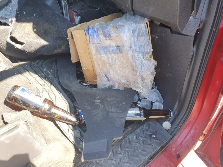 Los agentes viales encontraron al interior del vehículo un cartón de cerveza con hielo.