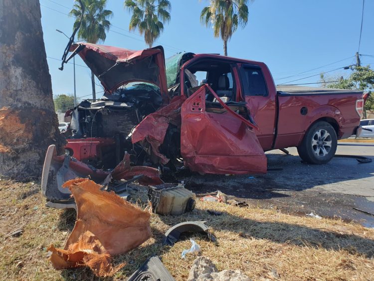 Tras la colisión el sujeto se proyectó de frente contra una palmera dejando la camioneta inservible.