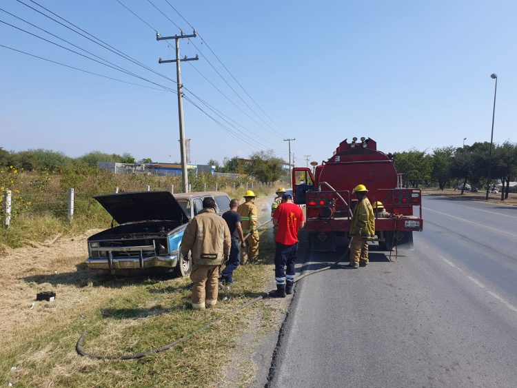 El primer oficial comentó que la camioneta tiene sistema de gas y al parecer una fuga en el carburador causó el incendio.