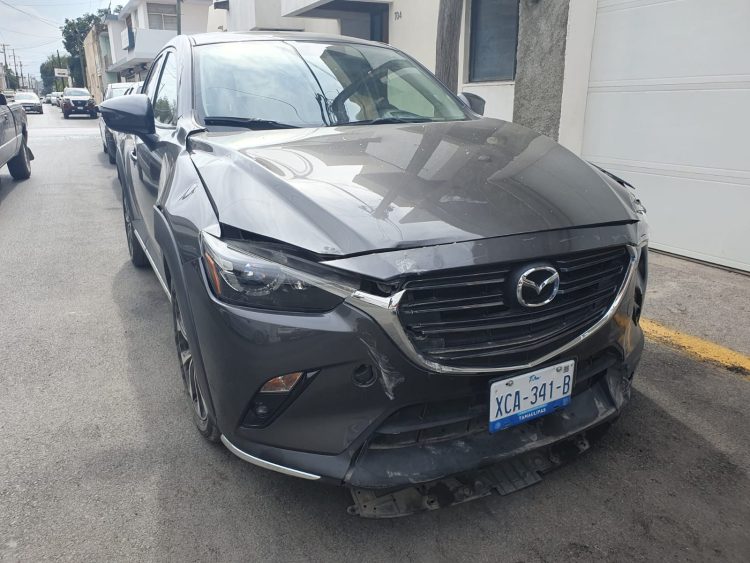 Justamente a llegar al cruce con la calle Abasolo al parecer rebasó el límite de alto y terminó siendo impactado por una camioneta Mazda de reciente modelo que venía con preferencia de paso.