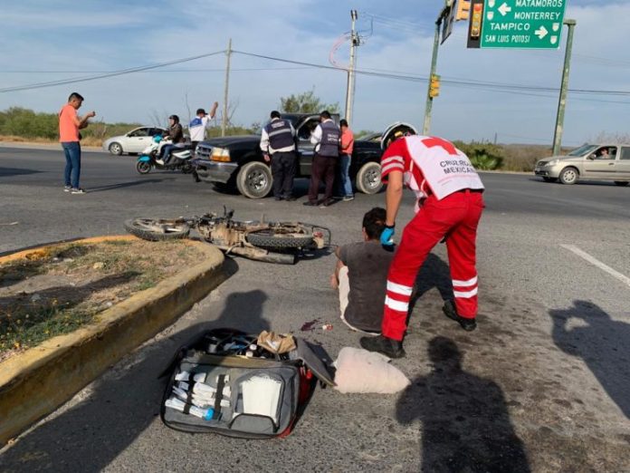 Fuerte accidente sufrió un motociclista y el cual tuvo que ser atendido por paramédicos de Cruz Roja luego de chocar con una camioneta en el libramiento Naciones Unidas y cruce con bulevar Prolongación Praxedis Balboa.