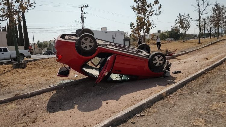 Según platicó la persona, se acababa de incorporar al libramiento Naciones Unidas cuando a los pocos metros trató de sacarle la vuelta a unos baches, lo que causó que perdiera el control y trepara al camellón central.