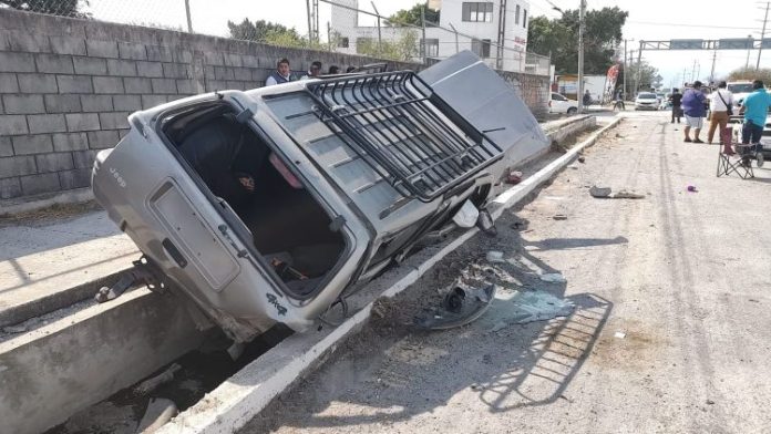 Aparatoso choque con volcadura ocurrido la tarde de este jueves dejó como saldo tres personas lesionadas y cuantiosos daños materiales.