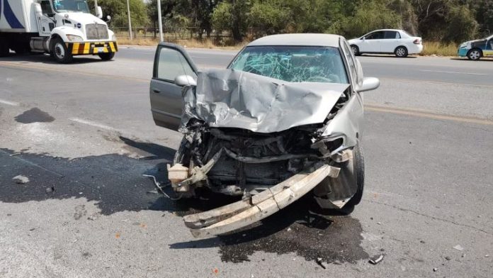 En el aparatoso accidente participó un automóvil de la marca Nissan tipo Sentra en el cual viajaban dos personas del sexo masculino con preferencia de paso en sentido de norte a sur.