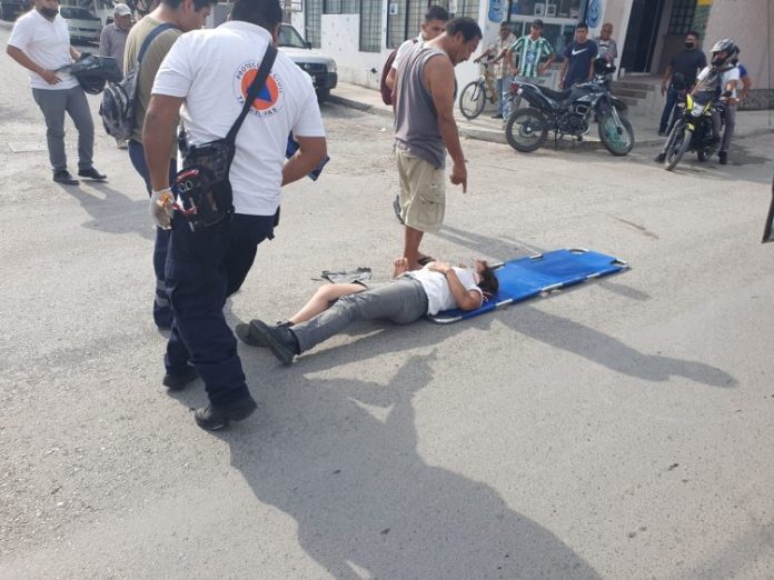 Presuntamente a la altura de la calle General Antonio Canales intentó dar la vuelta impactándose contra la pareja que viajaba a bordo de una motocicleta.