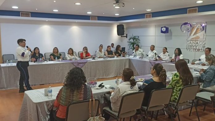 Ciudad Victoria, Tamaulipas.- Con la finalidad de concientizar a mujeres empresarias respecto a los diferentes tipos de violencia, el personal de la Guardia Estatal de Género impartió un taller a 22 mujeres empresarias de la Cámara Nacional de Comercio (CANACO).