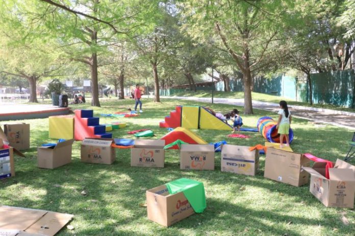 Las actividades lúdicas consistieron en tres estrategias que favorecen los vínculos afectivos entre las niñas, niños y sus familias, entre las que destacan: el “Paracaídas” un juego de actividad física al ritmo de la música; el “Circuito de obstáculos”; “Cajas y Telas” entre otros.