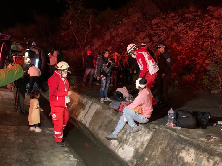 Cd. Victoria, Tam.- Alrededor de 15 pasajeros además de los dos operadores de un autobús resultaron lesionados luego de volcar en la carretera Rumbo Nuevo.