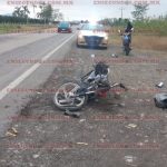 Las autoridades informaron que el accidente ocurrió cuando el lesionado intentaba incorporarse a la carretera sin darse cuenta que en ese momento circulaba un automóvil Chevrolet conducido por una mujer residente del Nuevo Morelos.