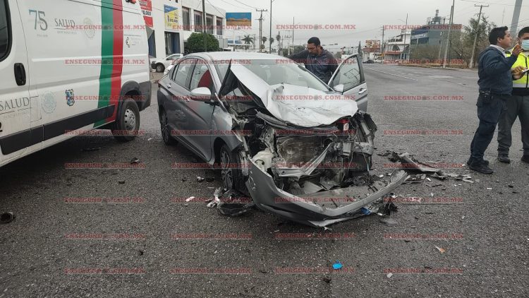 Una mujer lesionada y miles de pesos en daños materiales dejó como saldo un fuerte choque esta mañana en avenida José Sulaimán y calle Mina.