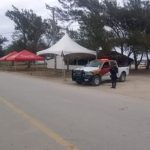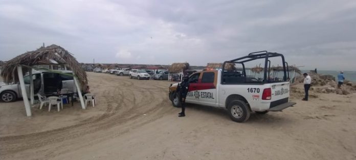 Soto la Marina, Tamaulipas.- A través del módulo de orientación turística, personal de la Guardia Estatal mantiene la proximidad social con los turistas que visitan el poblado La Pesca, en el municipio de Soto la Marina.