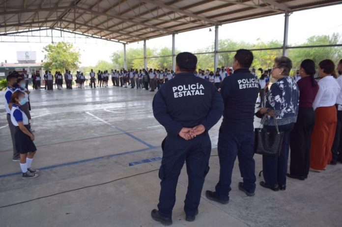 Ciudad Mante, Tamaulipas.- A través del trabajo coordinado entre la Secretaría de Seguridad Pública de Tamaulipas (SSPT) y las Mesas Ciudadanas de Seguridad, estudiantes de diferentes niveles educativos reciben pláticas informativas respecto a diversos tipos de violencia y delitos que podrían afectar su integridad.