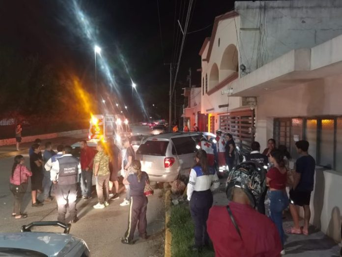 Fue al llegar al cruce con el Eje Vial cuando se estrella contra una camioneta Dodge Caravan que venía de norte a sur y la cual tras perder el control choca contra el portón de un domicilio.