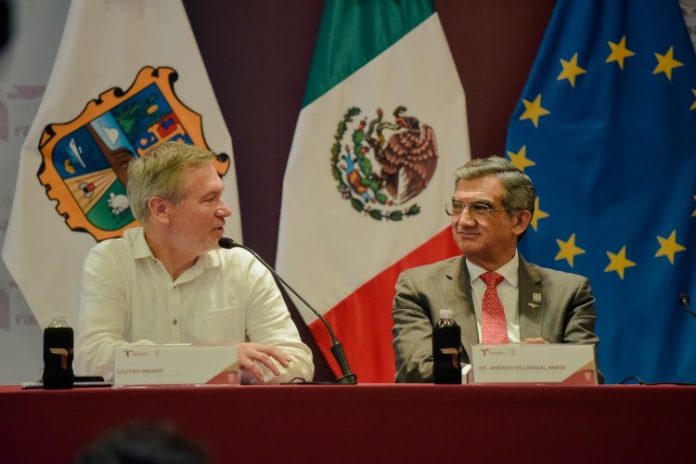 Ciudad Victoria, Tamaulipas.- Al anunciar la visita de 19 representantes de países europeos a la entidad en junio próximo, el embajador de la Unión Europea en México Gautier Mignot afirmó que Tamaulipas es un lugar donde se puede invertir y vivir tranquilamente, con destacados avances en materia de seguridad.
