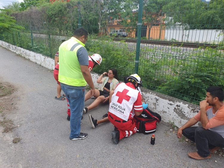 El accidente ocurrió en el eje vía Lázaro Cárdenas y calle Mier, hasta donde se trasladaron paramédicos de Cruz Roja para tener a los lesionados.