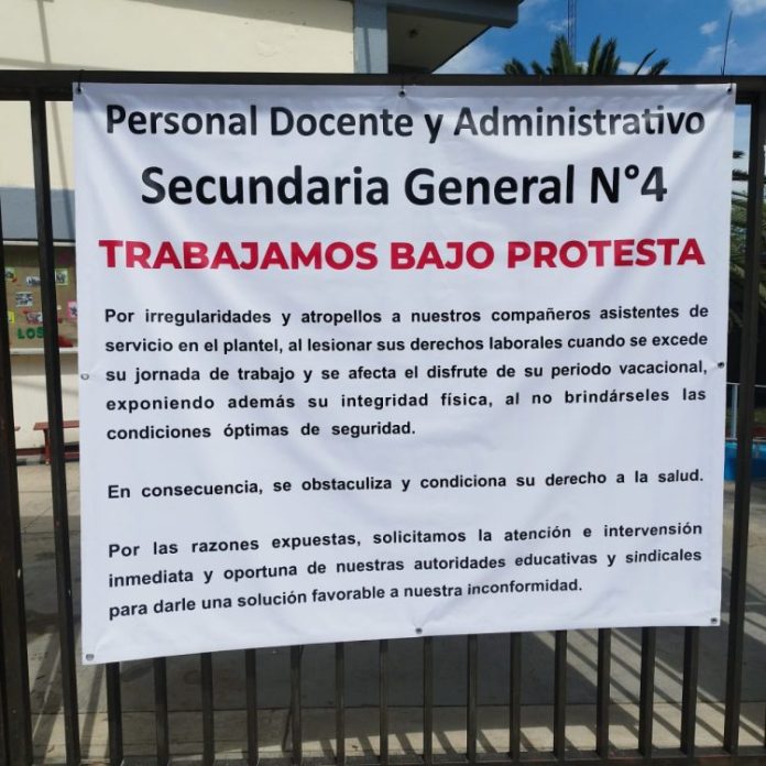 El personal docente y administrativo de la Secundaria General Número 4, se manifestó pacíficamente denunciando irregularidades y atropellos a compañeros y asistentes del plantel.
