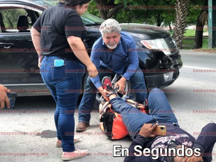 Un motociclista, repartidor de Didi, que estaba haciendo alto y fue impactado en la parte trasera por una camioneta resultó lesionado siendo atendido casi inmediatamente por el ex alcalde Xicoténcatl González Uresti.