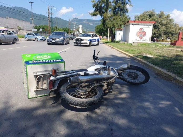 Un empleado de la refaccionaria Ruiz resultó lesionado cuando la motocicleta que conducía terminó por impactarla contra un vehículo que salió del centro comercial Walmart Adelitas.