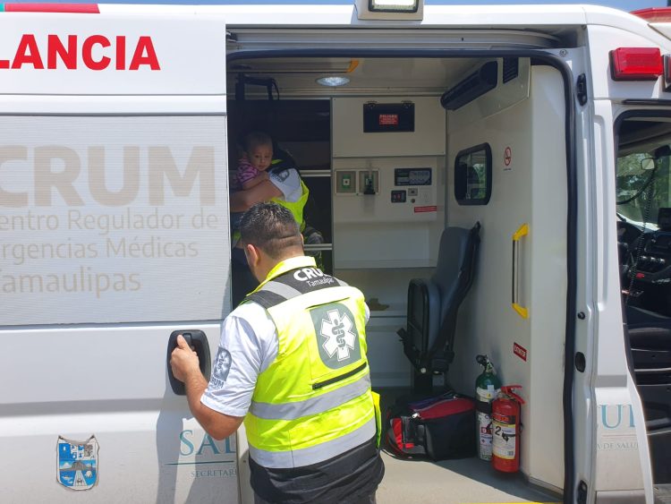 Paramédicos del Centro Regulador de Urgencias Médicas (CRUM) acudieron al lugar del accidente para atender a una ama de casa y a su pequeño hijo.