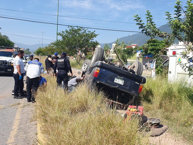 Un conductor que andaba en aparente estado de ebriedad terminó volcando su camioneta Jeep Cherokee en la cual también viajaba su esposa, su hijo y un amigo.