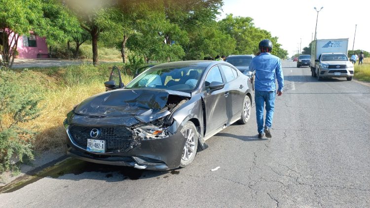 Al llegar al cruce con el libramiento rebasó el límite de alto y terminó chocando contra el Mazda el cual se desplazaba con preferencia de paso de norte a sur.
