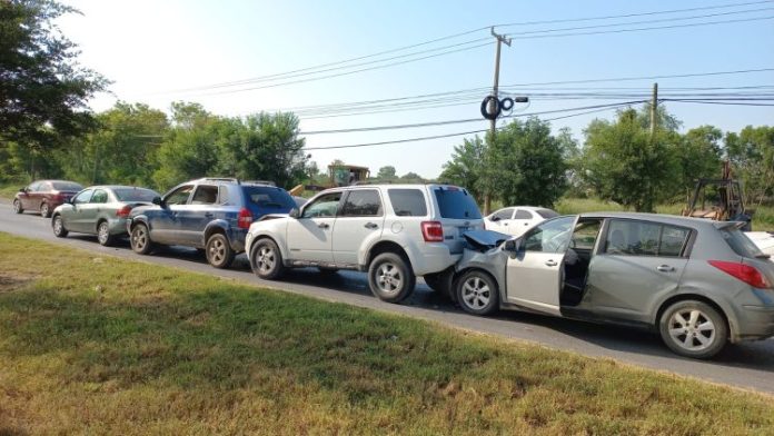La falta de precaución y el no medir la distancia provocó una carambola donde participaron cinco vehículos sin que se reportaran personas lesionadas.
