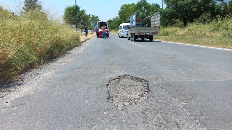 Un enorme bache que se encuentra en el libramiento Emilio Portes Gil, con calle Berriozábal provocó que una pareja, que viajaba a bordo de una motocicleta, se cayera resultando lesionada.