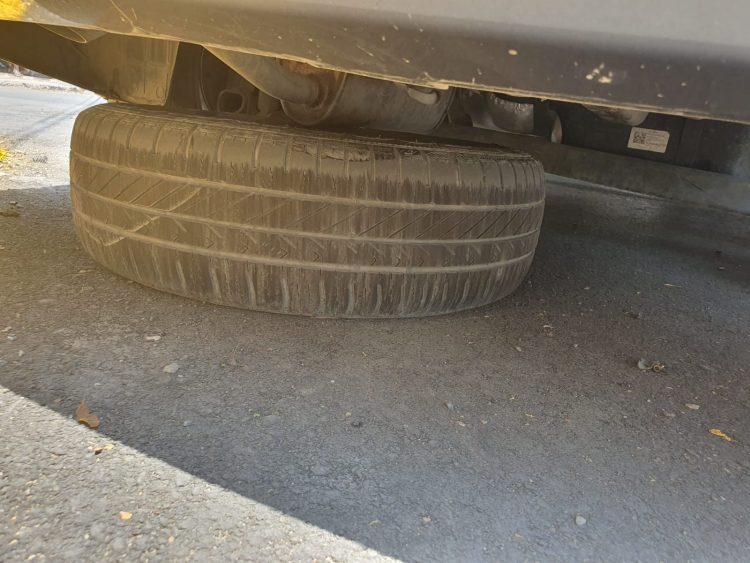 En el cruce con el 18 aparentemente no respeto el alto y fue impactada por una camioneta Chrysler la cual lo proyectó contra la banqueta causándole daños en el neumático trasero.