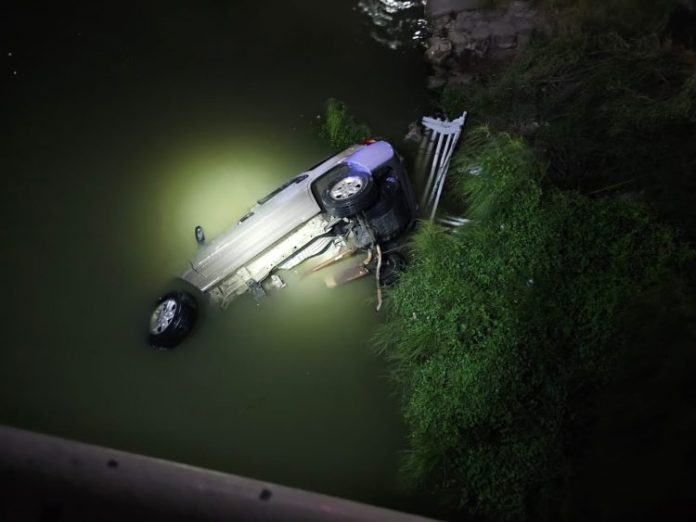 En una maniobra evasiva, el vehículo Jeep Cherokee cayó en el canal Anzaldúas, por lo que se solicitó la presencia de la grúa y personal de Protección Civil para realizar las maniobras de rescate.