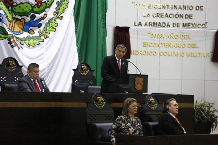 Ciudad Victoria, Tamaulipas.- El gobernador Américo Villarreal Anaya develó en el recinto del Honorable Congreso del Estado, las letras de oro con la leyenda “2023, Año del Bicentenario del Heroico Colegio Militar», como un reconocimiento a la lealtad, entrega, sacrificio y vocación de esta institución que ha forjado el perfil de las Fuerzas Armadas de México.