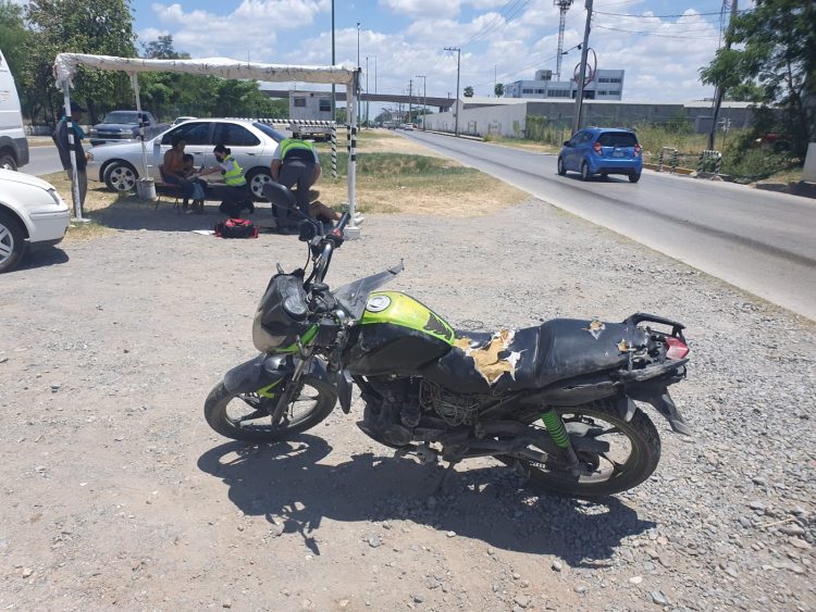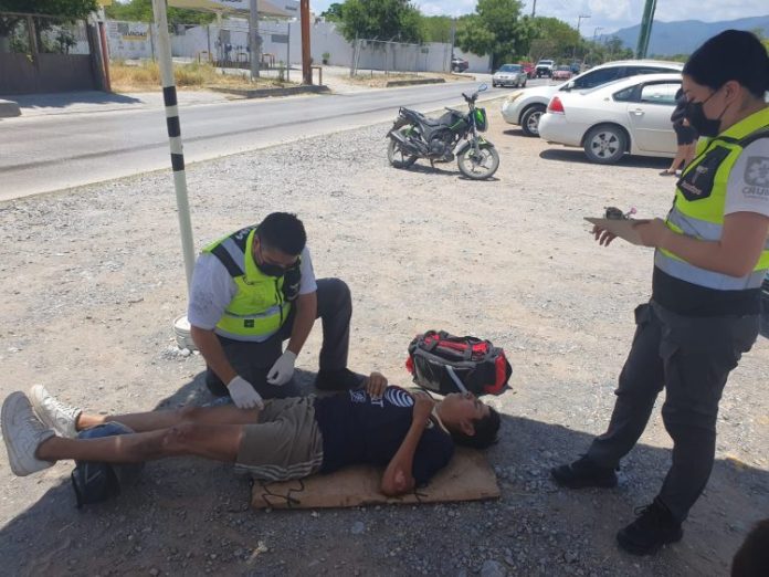 Mientras eran atendidos, el conductor de la moto dijo se desplazaba de sur a norte por el Eje Vial a bordo de una motocicleta marca Italika.