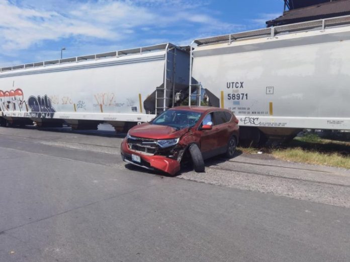 Al llegar al cruce ferroviario que se encuentra a la altura del Eje Vial Lázaro Cárdenas el conductor de la camioneta Honda ignoró un disco metálico de alto y en lugar de detener la marcha se atravesó al paso del tren carguero.