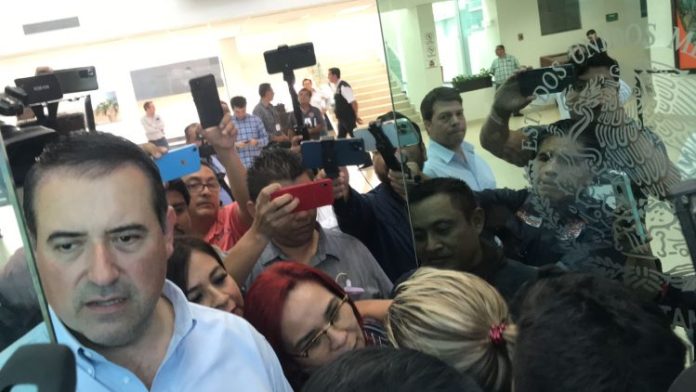 Con el coordinador de la bancada del PAN Félix Fernando García Aguiar al frente, los legisladores panistas acompañaron al actuario notificador del Tribunal Electoral a la espera de que les hicieran entrega de las oficinas de la Junta de Coordinación Política.