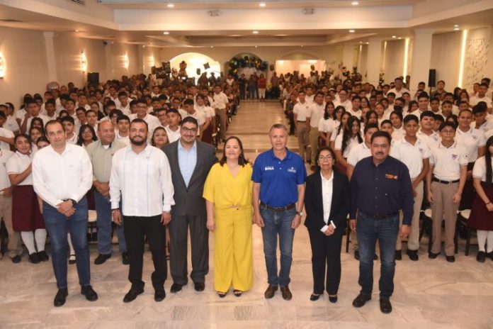 Chucho Nader, acompañado del titular del Centro de Desarrollo Educativo, Vladimir Castellanos García; del Regidor Presidente de la Comisión de Educación, Sergio Aguirre Contreras; y de la Directora del plantel, Gabriela Artemisa Leal Romero, motivó a los alumnos a no abandonar sus sueños, ni claudicar en su propósito de triunfar.