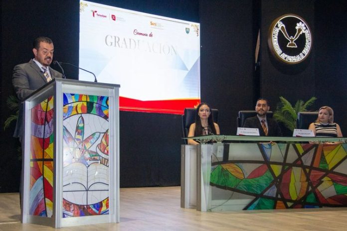 En el evento realizado en el Teatro Juárez, el rector dirigió un mensaje de felicitación a los graduados y, luego de agradecer la invitación, dijo sentirse muy honrado de pertenecer también a esa institución educativa como uno de sus egresados.