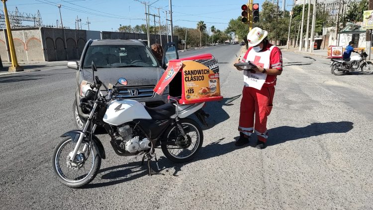 Paramédicos de Cruz Roja acudieron al lugar para darle atención prehospitalaria al repartidor quien afortunadamente no ameritó traslado a un hospital.
