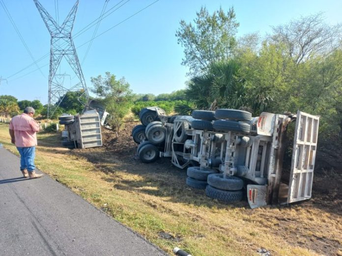 Vuelca tráiler cargado con abono