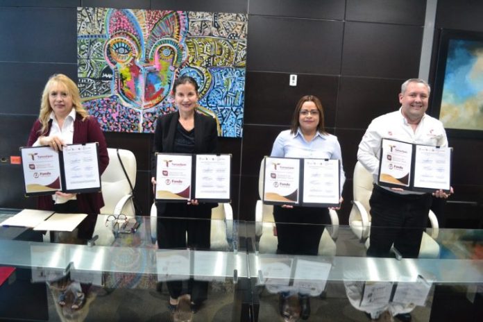 El convenio fue firmado por las secretarias de Economía; Ninfa Cantú Deandar; de Bienestar, Verónica Aguirre de Los Santos; la directora del Fondo Tamaulipas, Sandra Mejía y el subsecretario de Derechos Humanos y Articulación Social, Esteban Etienne Ruiz.