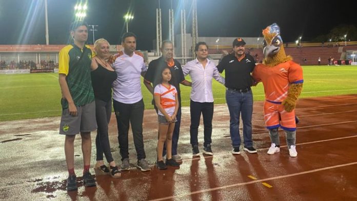 Al tomar el micrófono, Mendoza Cavazos reconoció a Mansur Guevara por la iniciativa de llevar al equipo de casa al profesionalismo, siendo una parte fundamental en el equipo que es muy querido por la gran afición naranja.