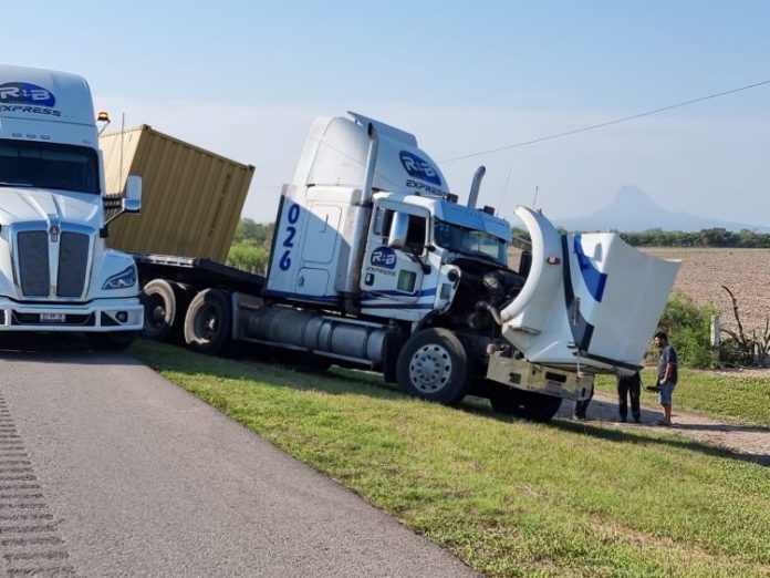 González, Tamaulipas.- Derivado del derrape de un tractocamión que circulaba de Altamira con destino a Monterrey, la circulación se encuentra obstruida en un carril la Carretera Federal 81.