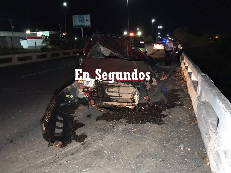 Cd. Victoria, Tam.- Un conductor resultó con graves fracturas y heridas cuando la camioneta que manejaba la estrelló contra el barandal de concreto de un puente y posteriormente volcó.