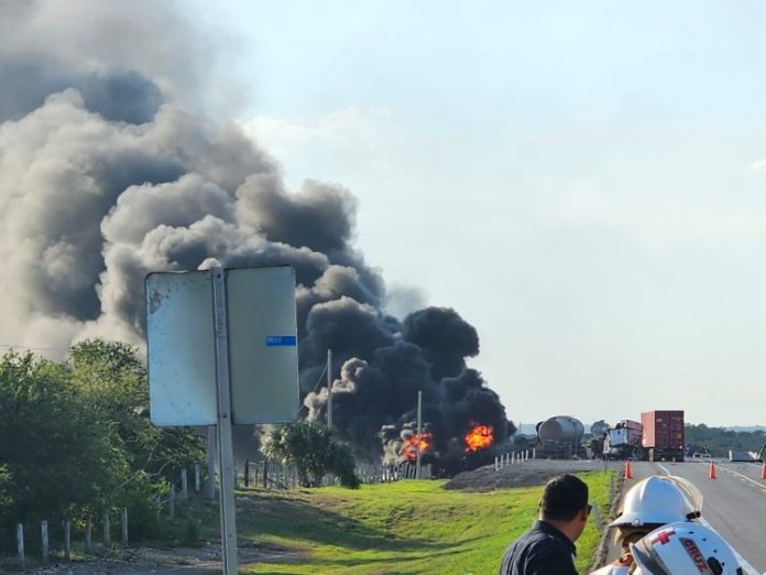 El incendio de una pipa provocó el cierre de la carretera Victoria-Tampico, a la altura del tramo González-Xicoténcatl.
